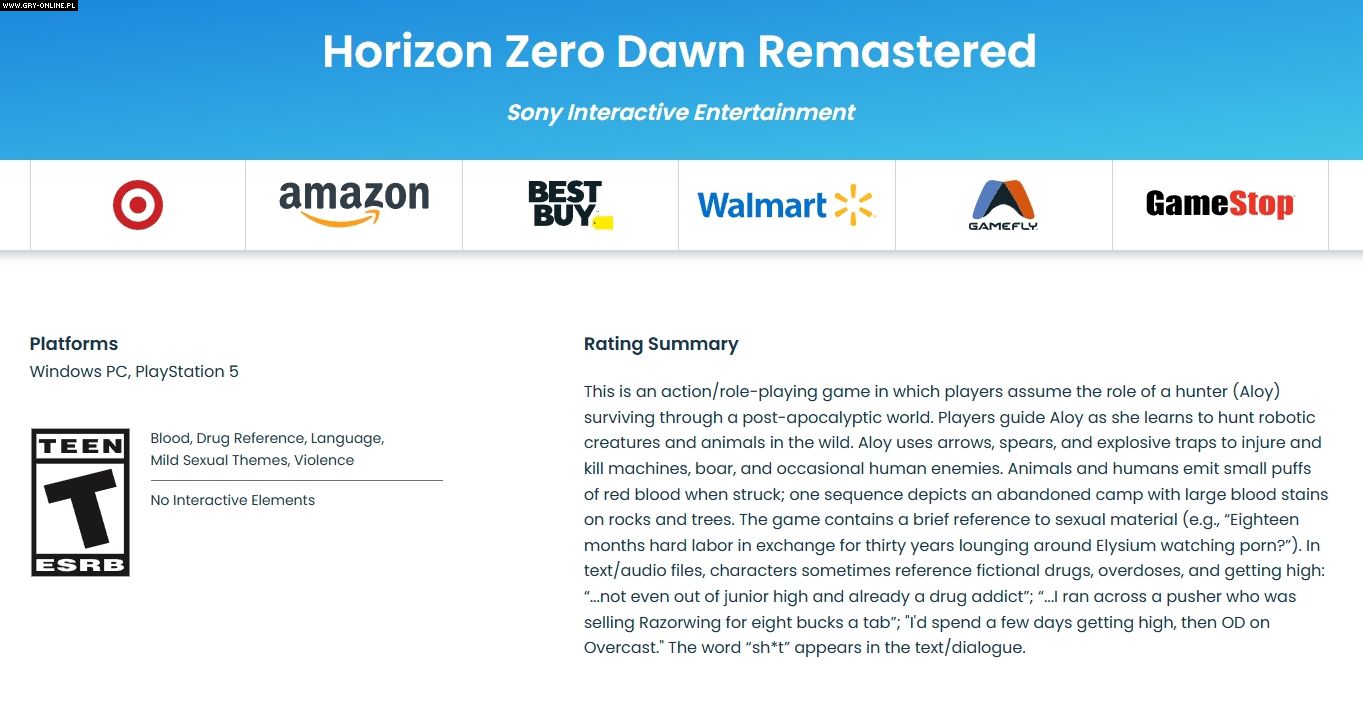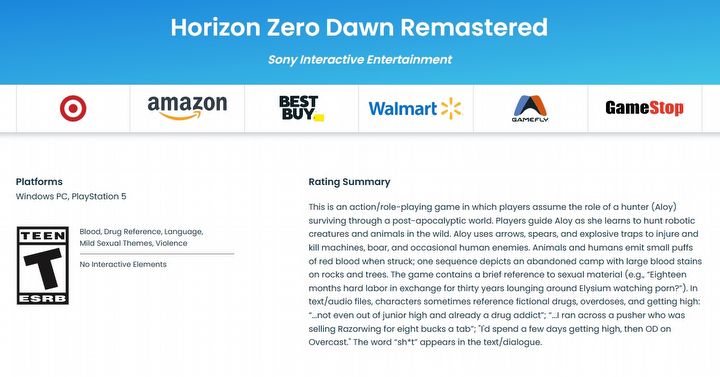 W niedalekiej przyszłości na rynek może trafić remaster przygodowej gry akcji Horizon Zero Dawn. Odświeżona wersja hitowej produkcji Sony trafiła do bazy ESRB.