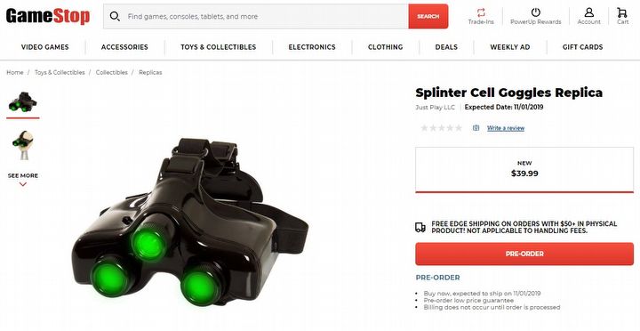 W ofercie sklepu internetowego GameStop pojawiła się replika gogli Sama Fishera z serii gier Splinter Cell. W ich opisie możemy znaleźć informację o zbliżającej się premierze najnowszej części cyklu.