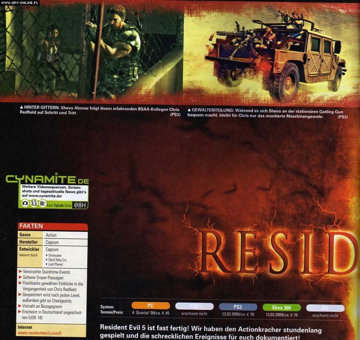 Plotki o wydaniu Resident Evil 5 na PC wydają się być prawdą. W ekskluzywnym materiale niemieckie czasopismo komputowe Games Aktuell podaje, że gra zapowiedziana na konsole Xbox 360 i PlayStation 3, ukaże się również w wersji na pecety w czwartym kwartale 2009 roku.