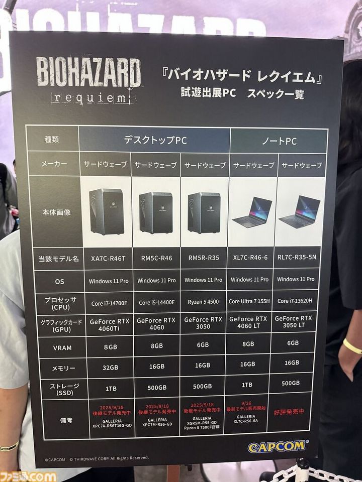 Firma Capcom nie podzieliła się jeszcze wymaganiami sprzętowymi gry Resident Evil Requiem, czyli dziewiątej odsłony jej bestsellerowego cyklu. Niemniej na tegorocznych targach Tokyo Game Show można było nie tylko sprawdzić wersję demonstracyjną tej produkcji, lecz również zapoznać się ze specyfikacją techniczną komputerów, na których była ona uruchomiona. Na jej podstawie można stwierdzić, że jej wymagania sprzętowe będą dosyć wysokie.