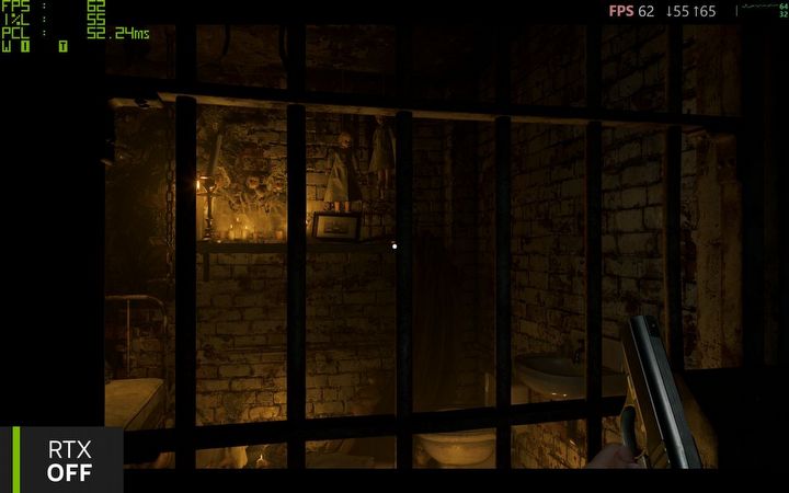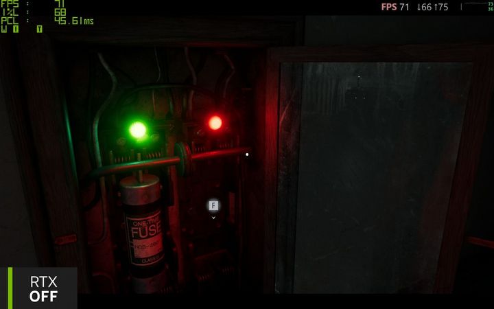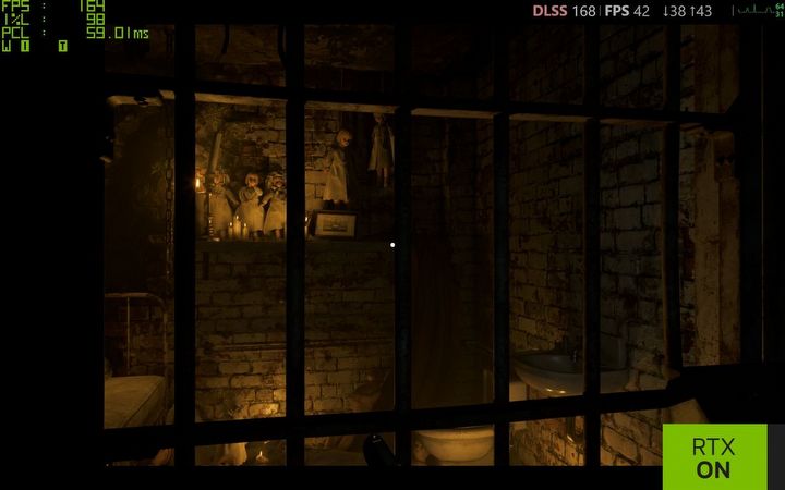 Ostatecznie jednak to nie za sprawą GIGABYTE mogłem się cieszyć tak immersyjną i klimatyczną grą. Tutaj największe brawa należą się NVIDII za ciągły rozwój technologii, w której modele sztucznej inteligencji (nauczania maszynowego) wykorzystuje się do trenowania upscalerów i generatorów klatek. Na koniec jeszcze ostatnie porównanie, aby przypomnieć, jak bardzo klimat sceny można zmienić z pomocą realistycznych technik oświetlenia, jednocześnie podnosząc prawie trzykrotnie FPS przy zachowaniu tych samych opóźnień.