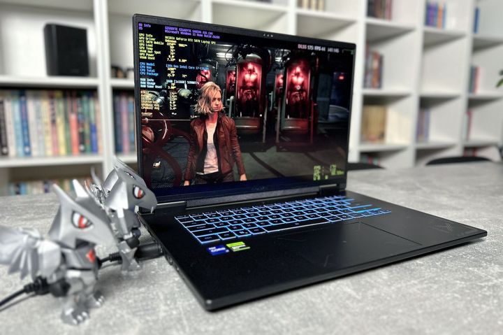 Pozostałe podzespoły to 10-rdzeniowy Intel Core i7-13620H, którego można by przyrównać możliwościami do Core i5-12400 na PC, co w sumie do grania w tym segmencie i z matrycą 165 Hz jest wystarczająco wydajnym CPU. Ciekawostką wynikającą z obecnych czasów jest obecność tylko jednego modułu RAM o pojemności 16 GB (DDR5 5200 MT/s) – drugi slot pozostaje wolny i można go uzupełnić, gdy ceny pamięci wrócą do normy. Niemniej teraz sytuacja tego laptopa przez wielu mogłaby zostać uznana za nieciekawą – nie ma dual channel, a jeżeli do tego dodamy standardowe 8 GB vRAM, to faktycznie można obawiać się problemów w grach, zwłaszcza tak wymagających jak najnowszy Resident Evil Requiem. Ostatecznie okazało się, że mój lęk był zupełnie bezpodstawny. Wręcz powiedziałbym, że ta konfiguracja idealnie w każdej kwestii się uzupełnia, jednocześnie dbając, aby nie wydrenować nam kieszeni. Oczywiście to tylko pod warunkiem, że umiemy ze sprzętu korzystać i funkcja NVIDIA DLSS jest zawsze aktywna.