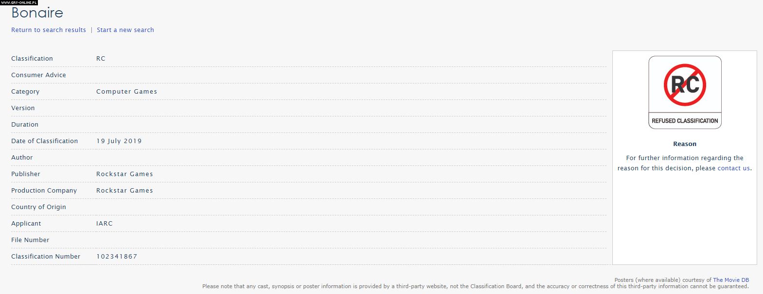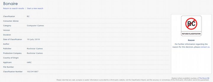 Na stronie australijskiej organizacji rządowej, która zajmuje się przydzielaniem kategorii wiekowych grom, filmom i innym tego typu publikacjom, pojawił się wpis dotyczący tajemniczego projektu pod tytułem Bonaire. Dzieło skatalogowane zostało jako gra komputerowa, a jego producentem oraz wydawcą jest firma Rockstar Games – twórcy m.in. serii Grand Theft Auto oraz Red Dead. Instytucja odmówiła przyznania kategorii wiekowej tytułowi, co w praktyce oznacza mniej więcej tyle, że Bonaire nie będzie mógł być sprzedawany w Australii.