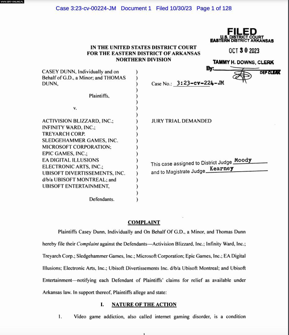 Pod koniec października do sądu w stanie Arkansas w Stanach Zjednoczonych wpłynął pozew rodziców dziecka w wieku szkolnym. Pozwani zostali prawdziwi giganci branży gier, tacy jak Activition Blizzard, Microsoft, Epic Games, Ubisoft czy Electronic Art.