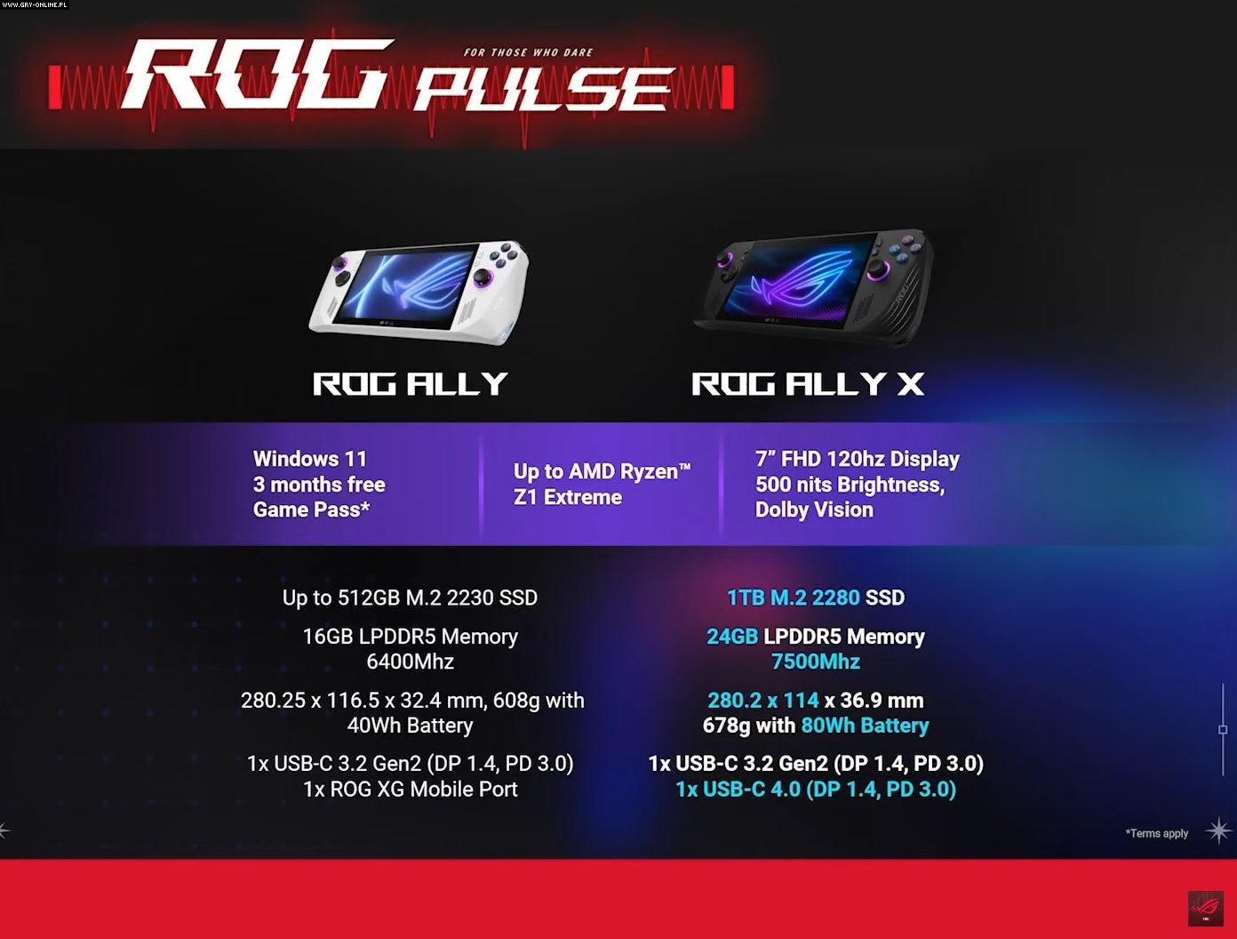 Na sam koniec Asus podzielił się ceną nadchodzącej konsoli. Wynosi ona 799 dolarów (ok. 3870 złotych). Dla porównania standardowy model w dniu premiery kosztował 699 dolarów, a w Polsce 3799 złotych. Pierwsze handheldy trafią do sprzedaży już w lipcu. Warto przy tym zaznaczyć, że ROG Ally nie zniknie z rynku. Asus ma dalej produkować podstawową wersję konsoli, której cena w obliczu nowej konkurencji może zacząć spadać. Na koniec prezentacji, prowadzący zaznaczyli, że ROG Ally X to jedynie odświeżony model, nie oferujący większej wydajności, a jedynie dłuższy czas pracy na baterii. Dopiero w przyszłości ma pojawić się prawdziwy następca, określany nieoficjalnie jako ROG Ally 2.