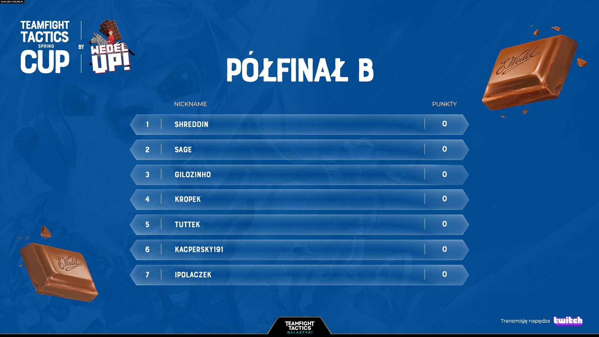 Już jutro rozpoczniemy półfinały turnieju Teamfight Tactics Spring CUP by Wedel Up!. Najlepsi zawodnicy w Polsce powalczą o awans do finału oraz możliwość zdobycia nagród z puli 20 000 złotych.