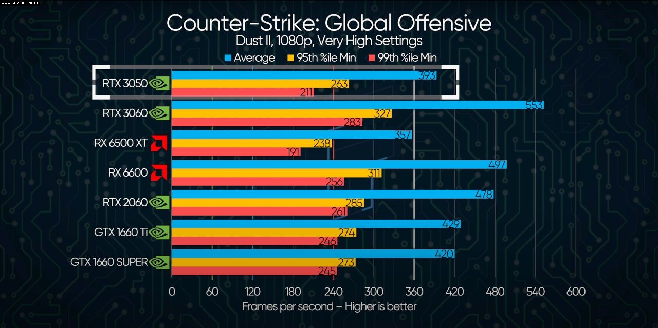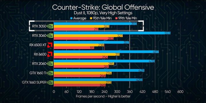 RTX 3050 | RTX 2060 | GTX 1660 SUPER | RX 6500 XT | |