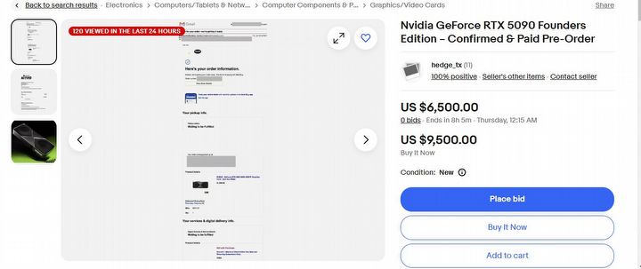 Prawdopodobnie wszyscy byli świadomi, że scalperzy wykorzystają sytuację z premierą RTX-ów 50, ale takiego windowania cen chyba nikt się nie spodziewał. Cena sugerowana RTX-a 5090 wynosiła 1999 dolarów. Natomiast sprawdzając oferty z Tajwanu zobaczymy, że karta jest do kupienia za 9500 dolarów, jeśli chcemy skorzystać z opcji „kup teraz”.