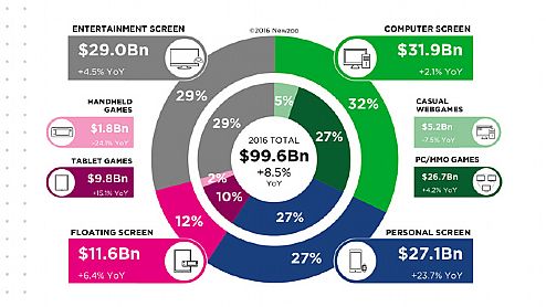 Organizacja analityczna Newzoo opublikowała raport z prognozami na trwający obecnie rok 2016. Według firmy rynek gier ma wygenerować w tym okresie niemal 100 miliardów dolarów przychodów i aż 37% z tej kwoty przypadnie na segment mobilny, który przerośnie tym samym pecety i konsole.