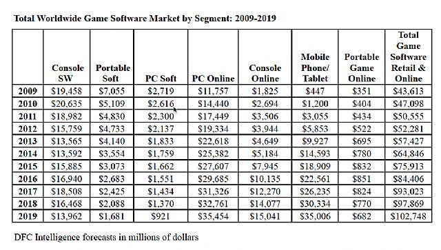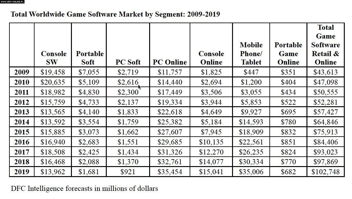 Pod koniec czerwca firma DFC Intelligence donosiła, że wartość rynku gier osiągnie 100 mld dolarów w 2018 roku. Niedawno analitycy musieli zrewidować ten pogląd – biorąc pod uwagę utratę przez konsole casualowej klienteli na rzecz urządzeń mobilnych, uznano, że wspomniana kwota zostanie przekroczona w 2019 roku.