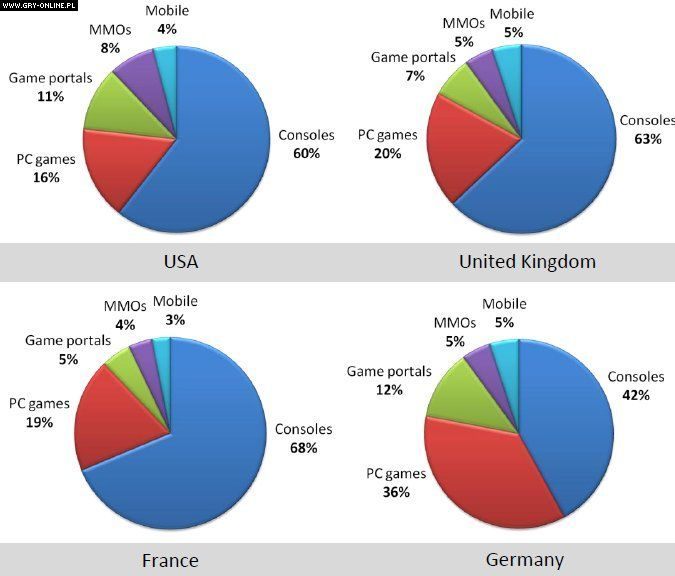 Badanie przynosi kolejne potwierdzenie tego, że na rynku amerykańskim dominują konsole, na które gracze wydali 15 miliardów dolarów. Rynek pecetowy w USA wygenerował natomiast 4.15 miliarda dolarów. Sytuacja wygląda podobnie w Wielkiej Brytanii, chociaż zmienia się w pozostałych krajach Europy – komputery osobiste najsilniejsze są nadal w Niemczech.