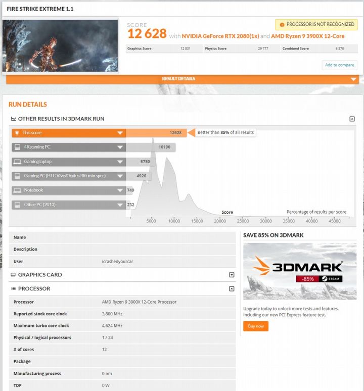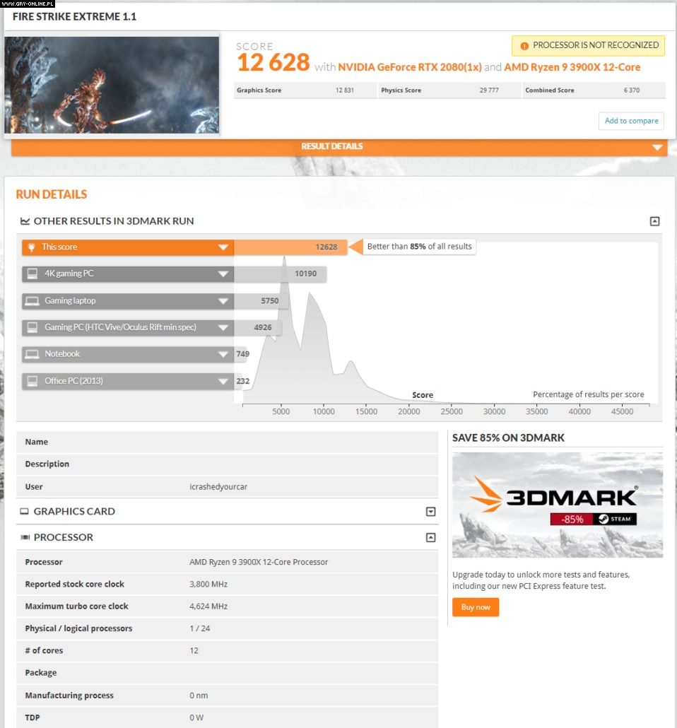 Tymczasem pierwszy 12-rdzeniowy układ przeznaczony dla graczy - Ryzen 9 3900X - stawia poprzeczkę jeszcze wyżej. W benchmarku Firestrike Extreme uzyskał on 29777 punktów, co jest rezultatem lepszym od wyników topowego układu Intela (o ponad 5000 punktów) oraz Ryzena Threadrippera 2950X (o niemal 2000 punktów).