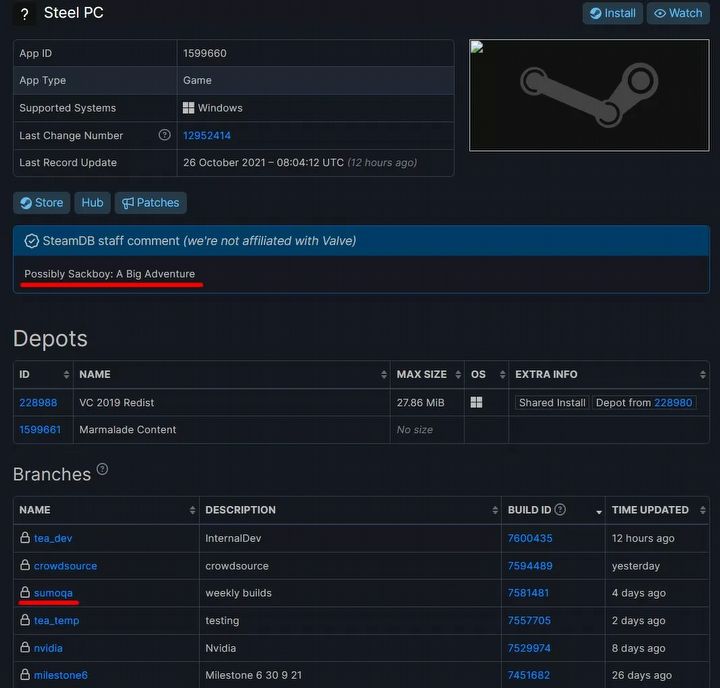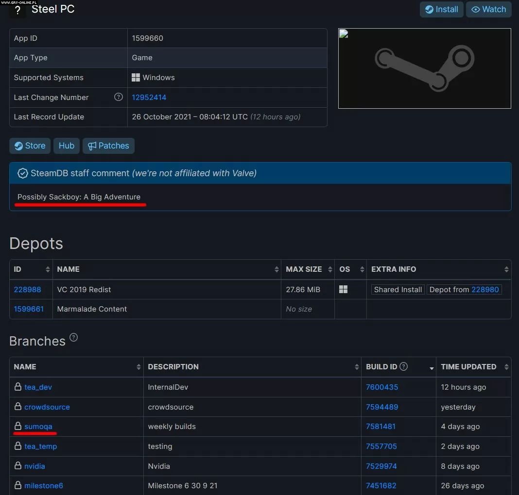 Po drugie: wpis istniał w bazie danych Steama od miesięcy pod nazwą marmelade – tą samą, pod którą Sackboy figurował we wrześniowym przecieku usługi GeForce Now. Tym samym byłoby to kolejne potwierdzenie, że – wbrew wyjaśnieniom firmy Nvidia – odkryta wtedy lista dotyczyła pozycji rzeczywiście zmierzających na pecety.