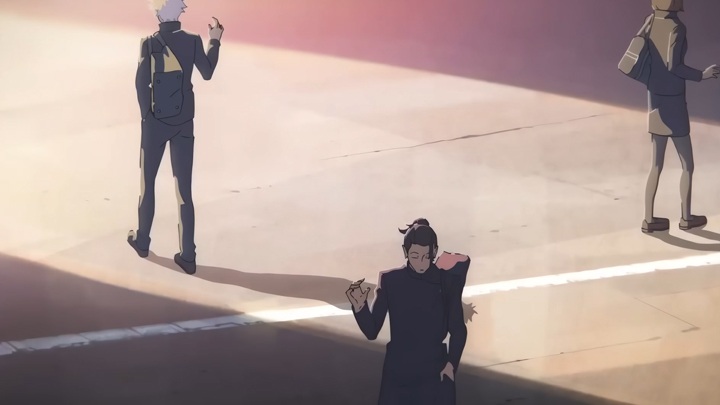 Trudno w tej scenie nie dostrzec podobieństw do sceny z trzeciego endingu JJK z Satoru Gojo, Suguru Geto i Shoko Ieiri, którzy również w pewnym ujęciu rozeszli się i ruszyli w różnych kierunkach, co było dla nich symbolicznym momentem, podkreślającym to, jak każde z nich obiera inną drogę, oddalając się od reszty.