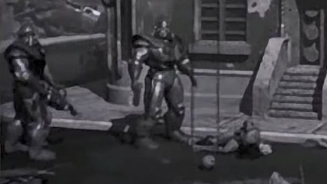 Każdy fan Fallouta prawdopodobnie zna intro do pierwszej części gry. Zanim dowiadujemy się, że „wojna, wojna nigdy się nie zmienia” widzimy ekran telewizora. Pierwszą informacją w jeszcze nadanym sygnale jest wiadomość o aneksji Kanady. Na ulicach miasta dwóch żołnierzy w pancerzach wspomaganych T-45 stoi obok nieuzbrojonego klęczącego mężczyzny. Jeden z wojskowych podchodzi do niego i strzela w tył głowy po czym macha do widzów, a drugi widocznie się śmieje.