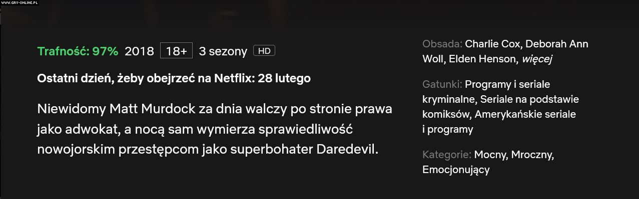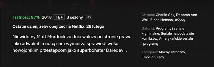 Przy każdym ze wspomnianych tytułów pojawiła się adnotacja, że jest on dostępny na platformie Netflix do 28 lutego 2022 roku. Chętnym na ich obejrzenie pozostają więc niespełna dwa tygodnie. Co się stanie z serialami Marvela po tej dacie?
