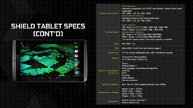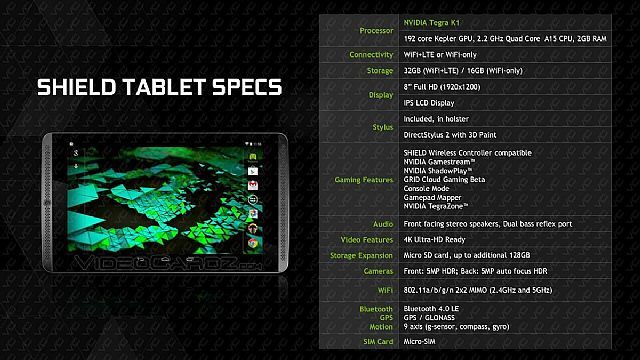 Kilka dni temu pisaliśmy o niepotwierdzonych informacjach dotyczących nowego urządzenia firmy Nvidia. W tekście zaznaczyliśmy, że „tajemniczym gadżetem będzie coś w rodzaju tabletu”. Dziś mamy już praktycznie potwierdzenie tych plotek, bowiem do sieci wyciekły grafiki promocyjne tego sprzętu, który ochrzczono mianem SHIELD Tablet. Oficjalna prezentacja maszyny ma się odbyć 22 lipca, ale już dziś wiemy o niej całkiem sporo. Przede wszystkim urządzenie posiadać 8 calowy ekran o rozdzielczości 1920x1200 pikseli i wyposażone będzie w układ Tegra K1 z 192 rdzeniami CUDA, procesor QuadCore 2.2 GHz A15 oraz 2 GB pamięci RAM. Oprócz tego tablet posiadać ma dwa głośniki i kamerę 5 megapikseli.