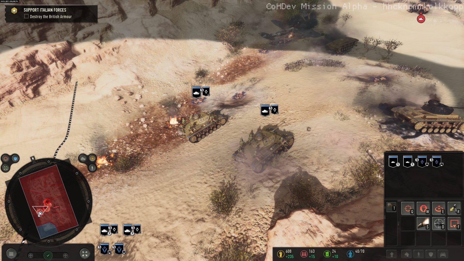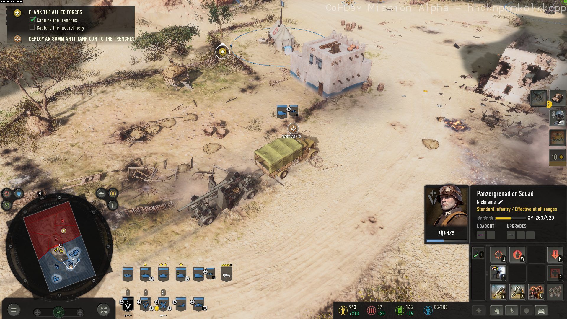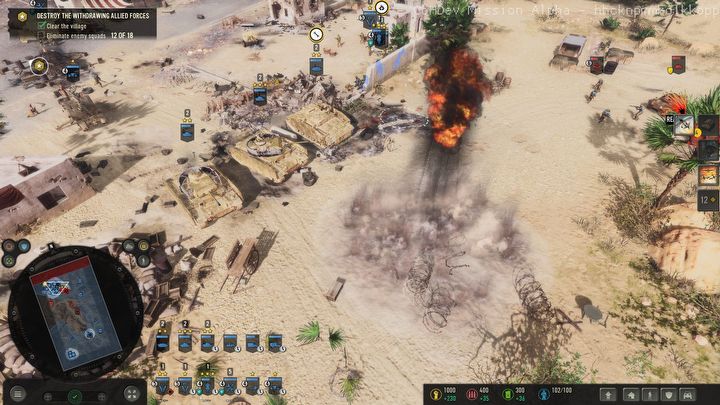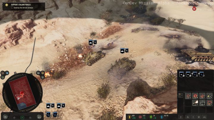 Przejdźmy do samej rozgrywki. W wersji alfa została udostępniona jedna z misji. Jako dowódca oddziału Afrika Korps należało wesprzeć mały oddział włoskich żołnierzy, a następnie okrążyć bronione miasto, zdobyć je i zniszczyć nadciągający konwój.