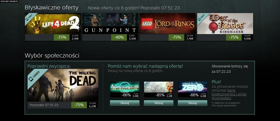 Społeczność tym razem wybrała tytuł przeceniony wcześniej w drugim dniu wyprzedaży – The Walking Dead, jedną z najlepszych gier ubiegłego roku. W głosowaniu pozostawiła ona daleko w tyle klimatyczny hack’n’slash – The Incredible Adventures of Van Helsing. Dzisiaj możecie wybierać pomiędzy: