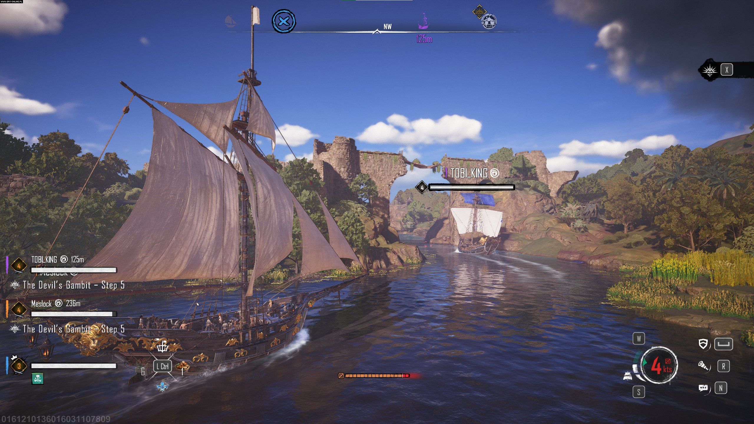 Nie wymagałem oczywiście skomplikowanej symulacji, ale cała mechanika żeglowania ogranicza się tu do wciśnięcia jednego przycisku (dwa razy, do pełnego rozstawienia żagli) oraz utrzymania DOWOLNEGO kursu, byleby nie był to kurs pod wiatr – bo tylko wówczas łódka faktycznie płynie wolniej. Jest to jednak szalenie ubogie rozwiązanie, jeśli pod uwagę weźmiemy żeglowanie z Sea of Thieves, gdzie niezbędne okazuje się ustalanie kierunku wiatru, obserwując zachowanie żagli i wstęg przewieszonych przez wanty, oraz nieustanne korygowanie naprężenia lin. W grze studia Rare czujemy, że płyniemy wirtualnym żaglowcem, w Skull & Bones poruszamy się raczej udającą żaglowiec motorówką – tym szybszą, im wyższej klasy jednostką dowodzimy.