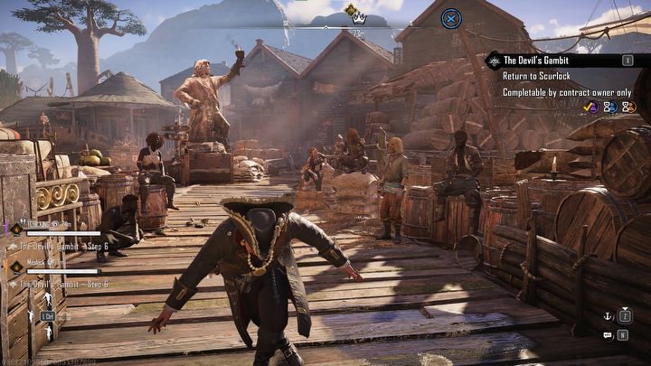 A na lądzie czeka sporo aktywności, możemy się np. ukłonić i ugotować zupę. Roleplay pełną gębą...Skull & Bones, Ubisoft, 2024.