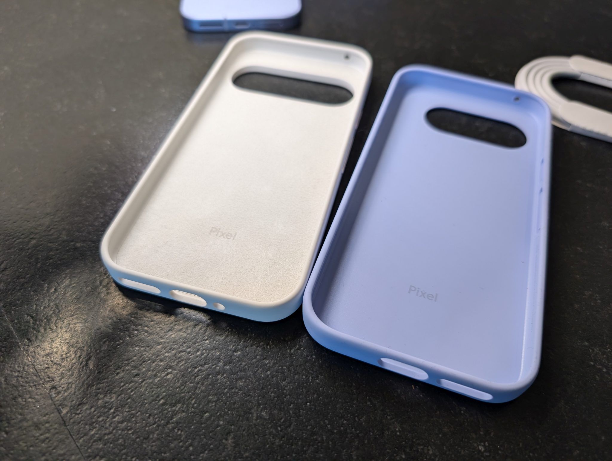 Etui Pixela 9 (po lewej) sprawia wrażenie znacznie bardziej premium niż modelu dla Pixela 9a (po prawej).Źródło: Fotografia własna.
