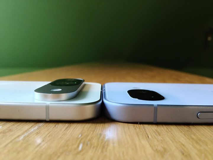 To, co zwraca największą uwagę w 2025 roku, to brak wystającej wyspy aparatów. Nic tu nie sterczy, a choć dwa „oczka” są wyraźnie wydzielone z reszty obudowy w czarnym segmencie, to odstaje on tylko nieznacznie. To gigantyczna zmiana w stosunku do Pixela 9, który ma bodaj najbardziej agresywną wyspę aparatów w dostępnych urządzeniach, głównie za sprawą ostrych krawędzi, które dodatkowo optycznie zwiększają jej wysokość. Taki skromny moduł fotograficzny może budzić niepokój, skoro nawet budżetowe modele prężą muskuły aparatami na pół obudowy. Okazuje się jednak, że przy projektowaniu Pixela 9a po prostu zrobiono wyspę taką, jaka była potrzebna, bez niepotrzebnego pompowania jej dla potrzeb marketingowych. I za to brawa.