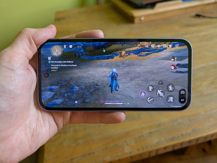 Bardziej wymagające gry o otwartym świecie lub dużych lokacjach stanowią spore wyzwanie dla urządzeń mobilnych, z czego największy problem sprawiają z reguły Genshin Impact i Wuthering Waves. Tensor G4 nie pozwala na grę na maksymalnych ustawieniach, jednak wydajność jest wystarczająca, by rozgrywka była stosunkowo płynna gdzieś w okolicy średnich ustawień graficznych. Przykładowo, w Wuthering Waves pozwoliło to na uzyskanie około 45 kl./s w spokojnych miejscach oraz 30-35 kl./s w czasie starć i dynamicznego poruszania się. Widoczne były chwilowe spadki wydajności, jednak nie wpływały one znacząco na grywalność.