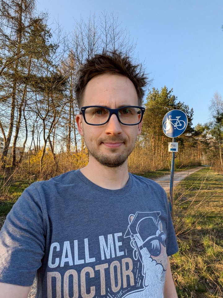 Zaczynając od przedniego aparatu – jest całkiem nieźle. Zdjęcia nawet na pełnej automatyce wyglądają dość dobrze, a jedną z mocnych stron Pixela są dobrze działające algorytmy odpowiedzialne za wyciągnięcie z aparatu jak najlepszych efektów. Tryb portretowy dość precyzyjnie wycina nawet rozczochraną fryzurę czy nierówne elementy.