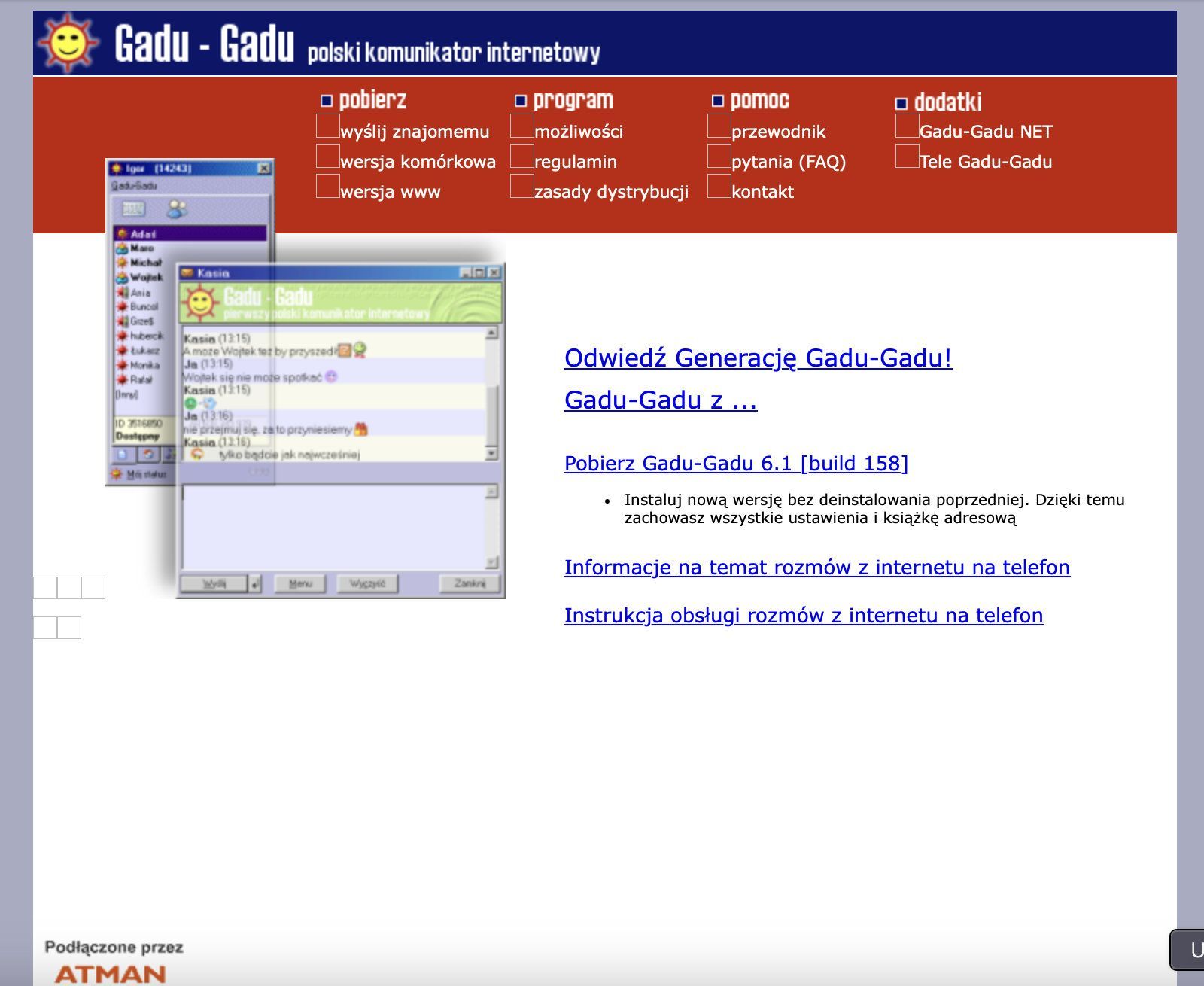 Za pierwszy można uznać ICQ, co można rozszyfrować jako fonetyczny zapis słów „I Seek You” – czyli „Ja Ciebie Szukam”. I tym w istocie był komunikator – umożliwiał wyszukiwanie osób, z którymi można było porozmawiać – tych znanych nam i tych nieznanych. Owszem, istniał wtedy IRC, ale komunikator internetowy był bardziej osobisty i przystępniejszy. Nie trzeba było już wchodzić na kanał IRC, szukać serwera i znać komendy. Po prostu miało się uruchomioną aplikację w tle i każdy mógł zagadać. No właśnie, skoro przy gadaniu jesteśmy, to pora opowiedzieć o polskim komunikatorze.