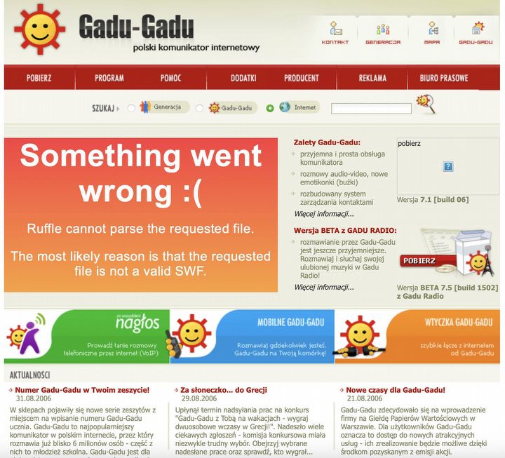 Nowsza wersja strony do pobrania komunikatora. Widać, że już nie tylko komunikator jest tutaj istotny.Źródło: web.archive.