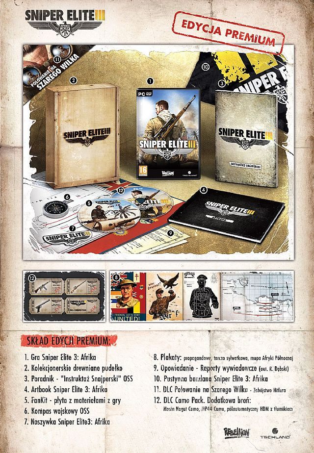 Na rynku polskim Sniper Elite III: Afrika będzie wydany w wyjątkowej i niedostępnej w innych krajach wersji Premium. Specjalne wydanie gry będzie dostępne na platformę PC w cenie 149,90 zł.