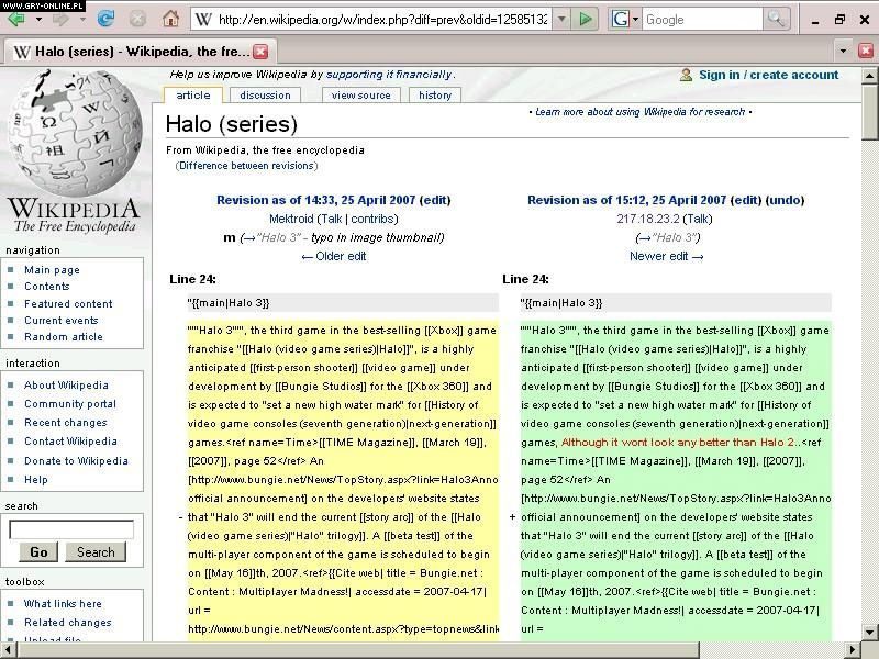 Wymieniona spółka przyjrzała się encyklopedycznemu wpisowi serii Halo i potajemnie wzbogaciła w nim akapit dedykowany trzeciej części gry Bungie o frazę „Halo 3 nie będzie wyglądać lepiej niż Halo 2” , odnosząc się tym samym do przeciętnej – jej zdaniem - szaty graficznej, jaką zobaczymy w dopiero co ozłoconym projekcie. Okazało się, że feralne zdanie zostało wpisane z adresu IP, należącego do SCEE w Liverpoolu, a do wykrycia całego spisku najbardziej przysłużyło się opracowane niedawno narzędzie o nazwie WikiScanner.