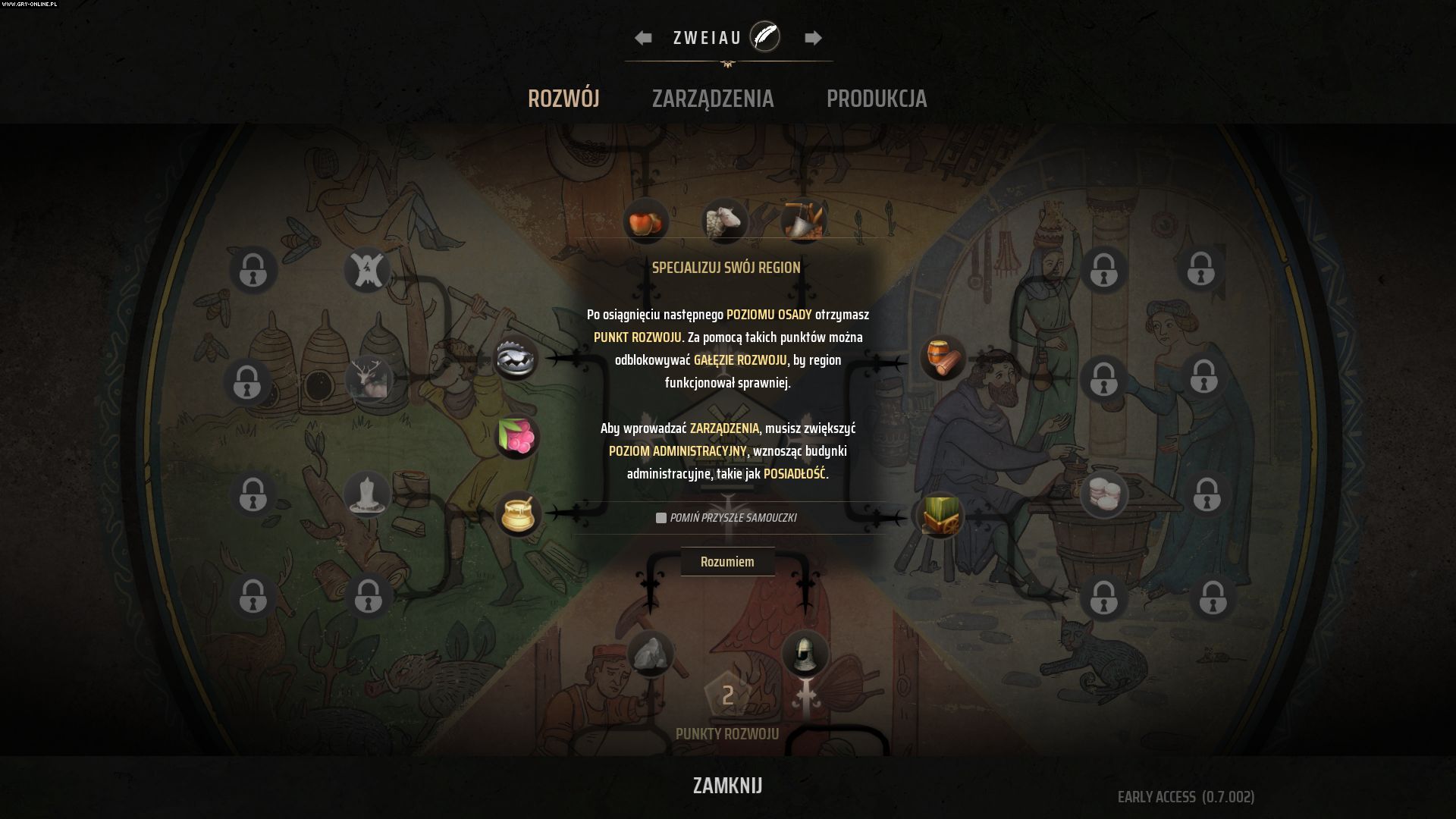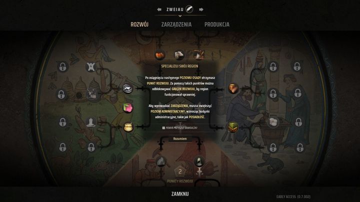 Ciekawostkę stanowi postęp technologiczny. Wydawałoby się, że mój geniusz powinien wystarczyć, jednak z jakiegoś powodu potrzebuję rozwoju osad do zdobywania kolejnych punktów potrzebnych do odblokowywania nowych mechanik. Tak, osad w liczbie mnogiej, bo każdy region ma swoje „drzewko” i konieczna jest ścisła specjalizacja. Osobiście najbardziej polubiłem handel, a zniesienie ceł stwarza ogromne możliwości pławienia się w dzikim wręcz bogactwie. Jak na szlachcica przystało.