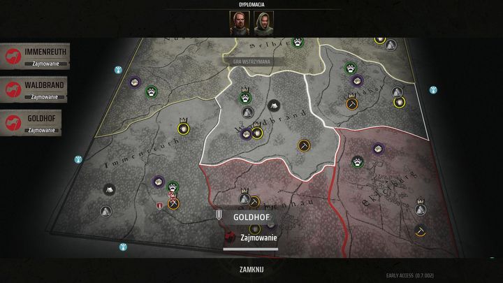 Pokonanie barona w pierwszej potyczce to jednak dopiero początek mojej drogi do wiecznej chwały i miana najbardziej znanego Eklera w historii kraju. Podbiłem w końcu zaledwie jeden z trzech zajętych obszarów. Na kolejne brakuje mi wpływów, zatem wszystko w swoim czasie. A teraz zajmę się chłopami.