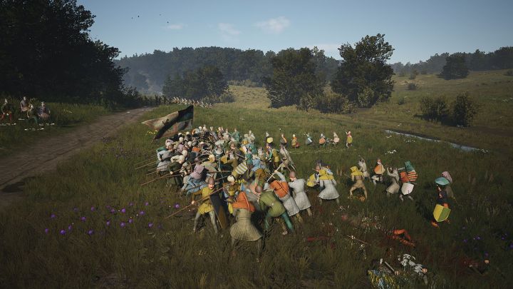 Pieczołowicie przygotowane siły przed starciem bardzo szybko zmieniają się w chaotyczny kocioł.Manor Lords, Hooded Horse, 2024.