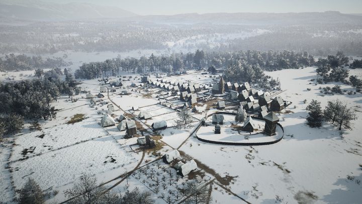Najbardziej do gustu przypadły mi deszczowe i letnie widoki, jednak zimą Eklerburg też prezentuje się dumnie.Manor Lords, Hooded Horse, 2024.