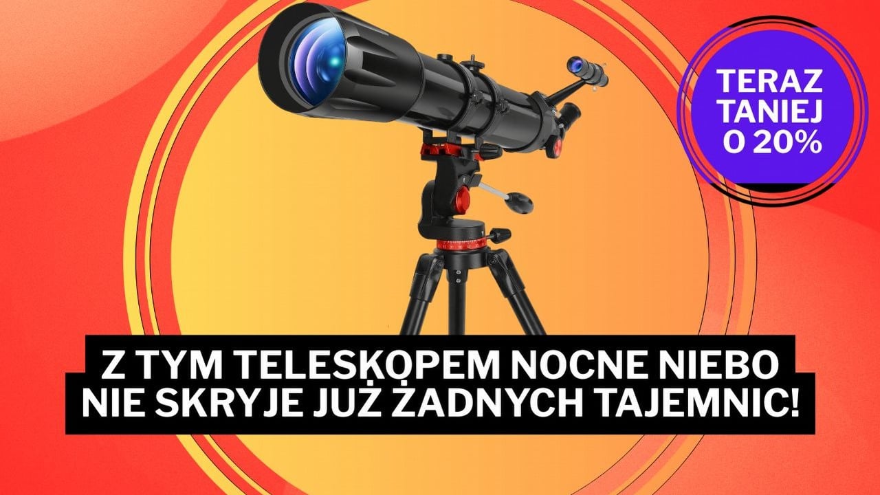 W zestawie zwykle znajduje się również regulowany statyw, który ułatwia ustawienie sprzętu na odpowiedniej wysokości, oraz celownik pomagający szybko nakierować tubę na wybrane obiekty. Teleskop firmy HETEKAN obecnie dostępny jest w promocji na Amazonie. Można go kupić za niecałe 800 złotych. To dobra okazja, bo w ten sposób zaoszczędzamy 200 złotych.