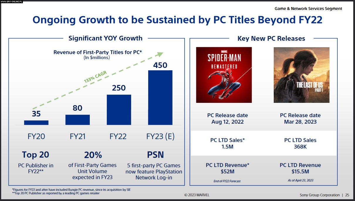 Jedną z ciekawszych informacji zawartych w prezentacji jest ta dotycząca liczby sprzedanych kopii dwóch produkcji first-party ze stajni Sony na PC.
