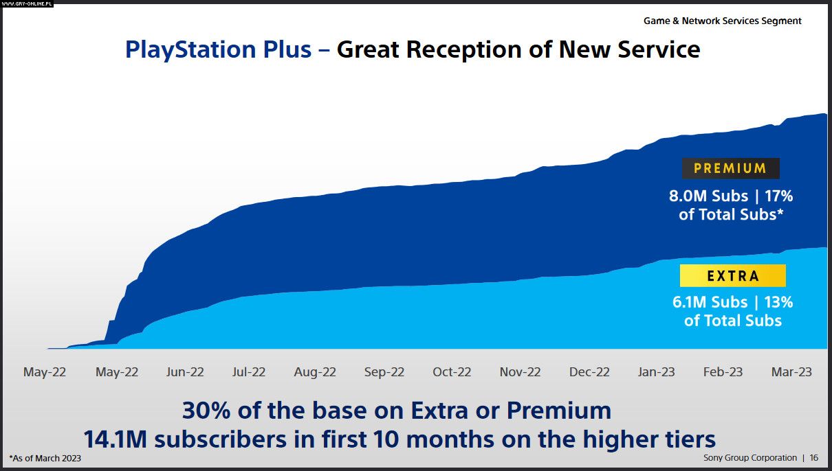 Japończycy podzielili się także danymi dotyczącymi usługi PlayStation Plus. Po zeszłorocznym rozbiciu abonamentu na trzy różniące się ceną warianty, duża część użytkowników chętnie zaadaptowała droższe warianty usługi.