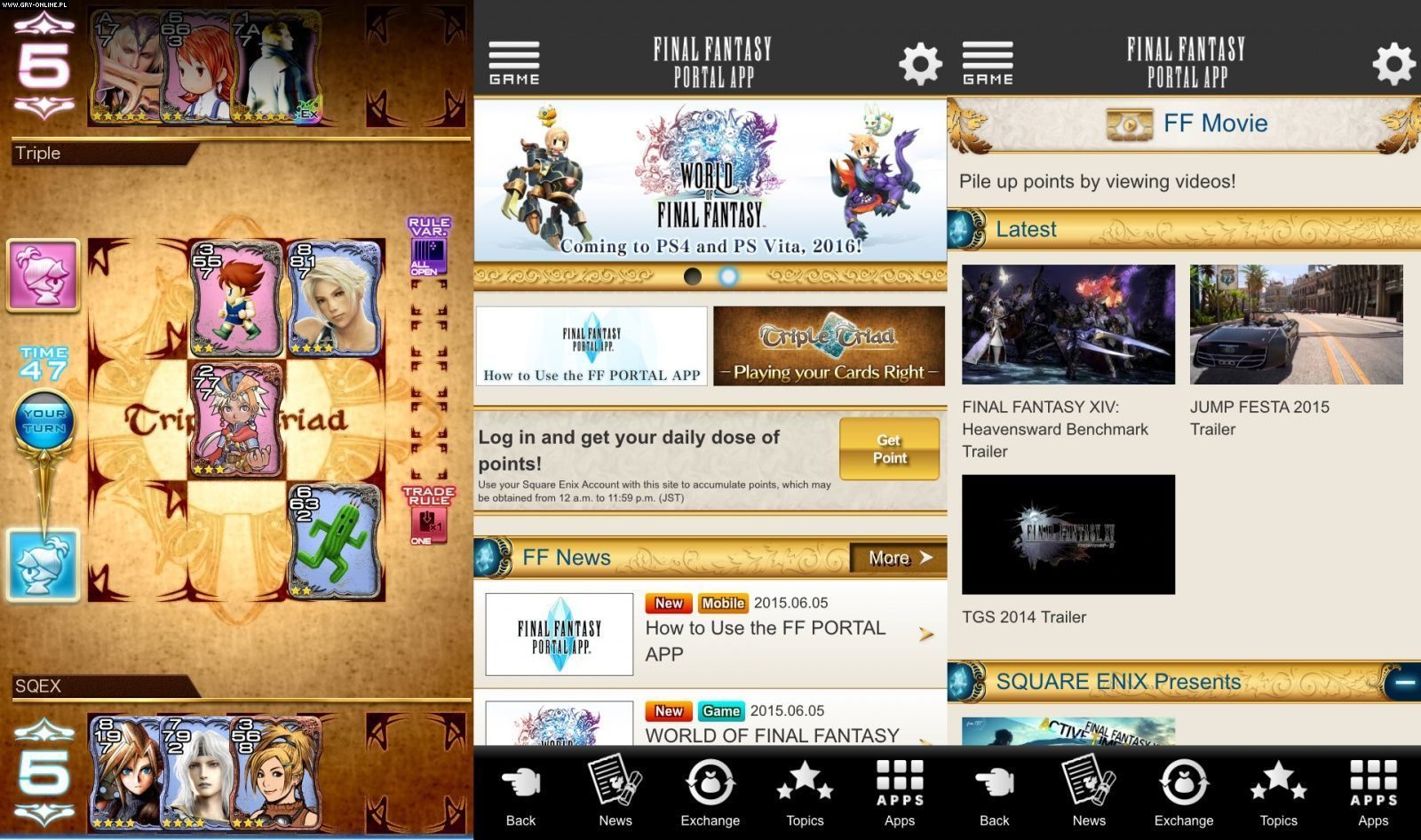 Podczas konferencji firmy Square Enix zaprezentowano też aplikację Final Fantasy Portal App. Aplikacja ta służy jako aktualizowane na żywo kompendium dotyczące gier z serii Final Fantasy. Ilekroć pojawi się jakaś informacja powiązana z tym cyklem, zostaniemy o tym natychmiast powiadomieni. Program zawiera też minigry, w szczególności karciankę Triple Triad, obecną pierwotnie w Final Fantasy VIII. Oferuje również rozwijanie profilu posiadacza, zdobywanie punktów doświadczenia oraz awansowanie na wyższe poziomy w zależności od naszego zaangażowania.