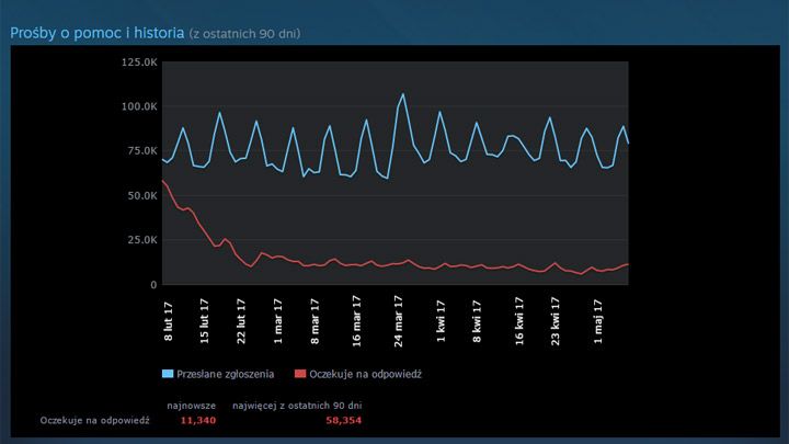Od połowy 2015 roku gracze mogą żądać zwrotu za tytuły zakupione poprzez Steam. Niedługo później narzekania poniektórych producentów wyraźnie pokazały, że użytkownicy platformy firmy Valve ochoczo korzystają z nowej funkcji. Potwierdza to najnowszy raport Pomocy technicznej Steam, według którego każdego dnia pojawia się średnio prawie 60 tysięcy próśb o zwrot pieniędzy za gry. Dla porównania – w tym samym czasie napływa około 16 tysięcy zapytań dotyczących wsparcia technicznego, bezpieczeństwa i obsługi transakcji. Nie podano, ile z tego typu wniosków spotyka się z pozytywną decyzją, aczkolwiek w raporcie znalazła się informacja, że ponad 90% tych zgłoszeń zostaje rozpatrzonych w ciągu kilku godzin (od 48 minut do niecałych dwóch godzin według danych dostępnych w chwili pisania tego tekstu). Statystyki możecie śledzić na bieżąco na oficjalnej stronie Wsparcia technicznego Steam.