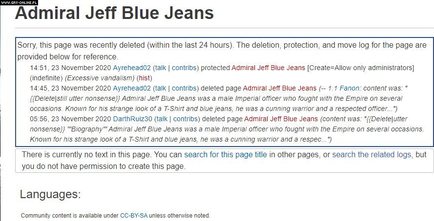 Internauci nie zwlekali i już rozpoczęli walkę o wprowadzenie „admirała” do kanonu Star Wars. Starali się nawet przemycić jego postać na Wookiepedię, czyli fanowską, gwiezdnowojenną Wikipedię, ale każdy z wpisów na temat Jeffa został niezwłocznie usunięty. Cóż, warto było próbować.