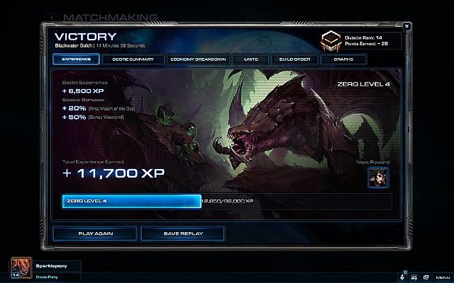 Według informacji upublicznionych przez firmę z Irvine w Kalifornii, podczas bitew gracze uzyskają określoną liczbę punktów doświadczenia za każdorazowe zbudowanie własnych jednostek i zniszczenie tych należących do przeciwnika. Dodatkowe mnożniki zapewnią premie specjalne, przyznawane m.in. za pierwsze zwycięstwo każdego dnia lub grę w drużynie. Po pewnym czasie awansujemy na wyższy poziom doświadczenia w grze daną rasą – maksymalnie ma ich być 20 dla każdej ze stron konfliktu, a ich łączna suma będzie wyświetlana przy ikonce portretowej gracza.
