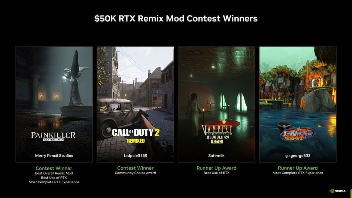 Aby zachęcić do wypróbowania nowych narzędzi dla modderów, NVIDIA wspólnie z portalem ModDB przygotowała konkurs z całkowitą pulą nagród wynoszącą 50 000 dolarów. Uczestników zaproszono do tworzenia remasterów klasycznych gier za pomocą narzędzi RTX Remix, a do rywalizacji zakwalifikowały się 24 projekty. Laureatów ogłoszono w trakcie Gamescomu 2025.