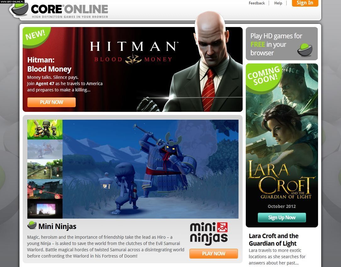 Square Enix uruchomiło Core Online, nowy serwis internetowy, który pozwoli użytkownikom na bezpłatną zabawę z pełnoprawnymi konsolowymi i pecetowymi produkcjami wydawcy, jedynie za pośrednictwem przeglądarki. W tej chwili witryna udostępnia jedynie dwa tytuły, którymi są Hitman: Blood Money oraz Mini Ninjas. Japońska firma zapowiedziała, że wkrótce pojawią się także następne, takie jak Tomb Raider: Underworld i Lara Croft and the Guardian of Light. Core Online korzysta z autorskiej technologii opracowanej przez Square Enix oraz Google i współpracuje z przeglądarkami Chrome, Firefox oraz Internet Exploler. Aby skorzystać z serwisu musimy się zarejestrować oraz zainstalować specjalną wtyczkę. Poza cyfrową wersją instrukcji, na stronie znajdziemy także minimalne wymagania systemowe jakie musi spełniać nasz komputer, by uruchomić obie gry.