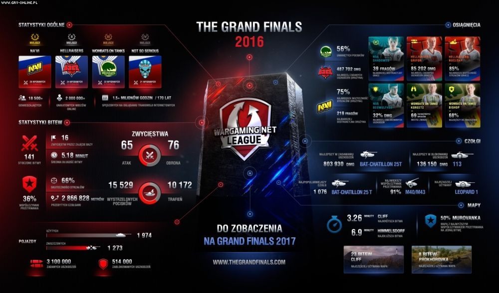 Pełne dane i inne, interesujące statystyki dostępne są na dołączonej infografice. Wzrost ilości widzów na żywo oraz podniesienie się czasu oglądania transmisji świadczy o tym, iż zawody stoją na coraz wyższym poziomie organizacyjnym oraz sportowym. Podczas mistrzostw przygotowane zostało więcej ciekawych atrakcji dla publiczności wliczając w to strefę do grania na komputerach osobistych, strefę Playstation 4, strefę wirtualnej rzeczywistości, konkursy z cennymi nagrodami, dwa prawdziwe czołgi przed halą Torwar i inne usprawnienia. Jeśli chodzi o poziom zawodów, najlepszym przykładem może być walka finałowa pomiędzy drużynami Na’Vi i Hellraisers o mistrzostwo, której dramatyzm i nieoczekiwane zwroty akcji sprawiły, że zapisze się na stałe w historii światowego eSportu. Warto podkreślić, że wszyscy odwiedzający mistrzostwa na warszawskim Torwarze oraz oglądający transmisje internetowe przyszli dopingować drużyny ligi Wargaming.net, a same zawody dotyczyły jednego tytułu, popularnego w Polsce i na świecie, World of Tanks (a nie wielu gier, jak to ma miejsce w przypadku innych tego typu imprez).