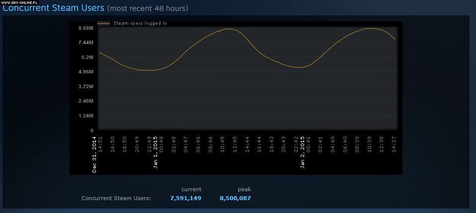 Rok 2014 zakończył się sukcesem firmy Valve, rok 2015 się nim rozpoczął. Po tym, jak pod koniec grudnia pobity został rekord w liczbie równocześnie zalogowanych na Steamie użytkowników, 2 stycznia została pokonana kolejna bariera – z najpopularniejszej PC-towej platformy korzystało jednocześnie ponad 8.5 miliona graczy.