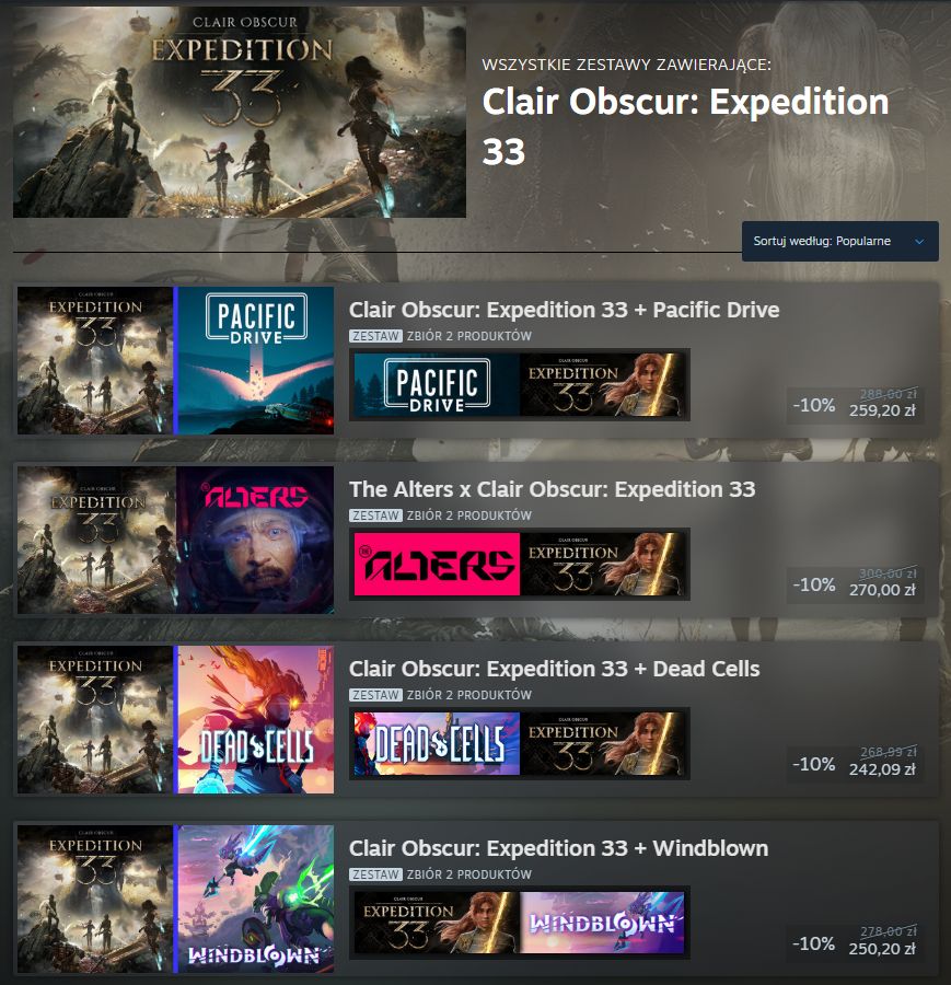 Kiedy gracz trafi już do owego okna, na pierwszych pozycjach wyświetlą mu się najchętniej kupowane zestawy z daną grą. Jednak nic nie stoi na przeszkodzie, aby ów spis pakietów posortować według innego kryterium – do wyboru są jeszcze opcje „cena”, „zniżka na zestaw” oraz „nazwa gry”. Funkcja ta powinna więc nieco ułatwić dokonywanie zakupów.