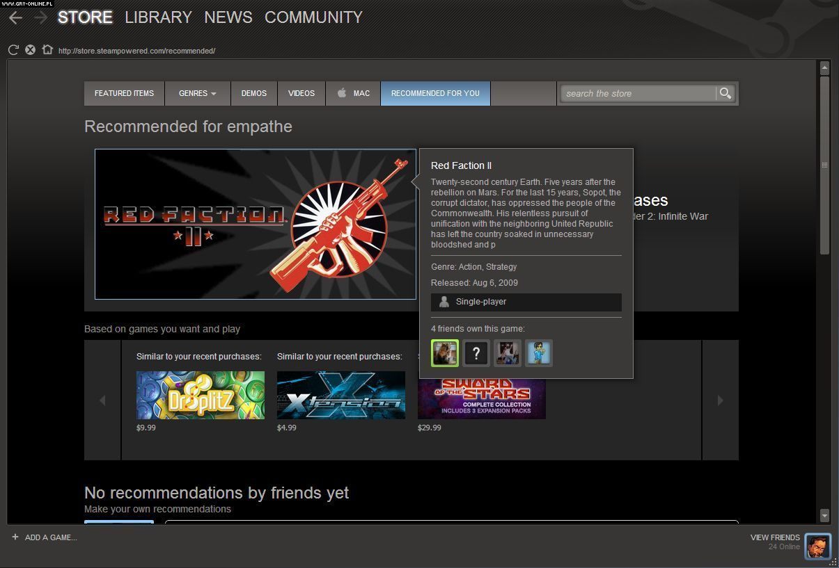 Firma Valve rozbudowała platformę Steam o nową funkcjonalność. Jest nim system rekomendacji gier oraz dodatków DLC (o nazwie „Polecane dla ciebie”), dobierający produkty w oparciu o analizę zainteresowań oraz dotychczasowych zakupów poczynionych przez użytkowników.